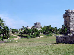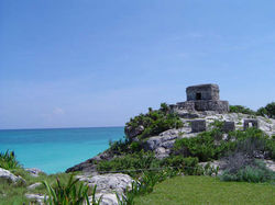 Tulum est une ville située sur la côte caraïbe de la péninsule mexicaine du Yucatan. Elle est connue pour ses vestiges très bien préservés d'une cité portuaire antique maya. Le bâtiment principal se compose d'une construction massive en pierre, appelée le Castillo (château). Perché sur une falaise rocheuse, il domine la plage de sable blanc et la mer turquoise. Proche de ces ruines se trouve le parc national de Tulum, zone côtière constituée de mangrove et de cénotes (puits naturels).